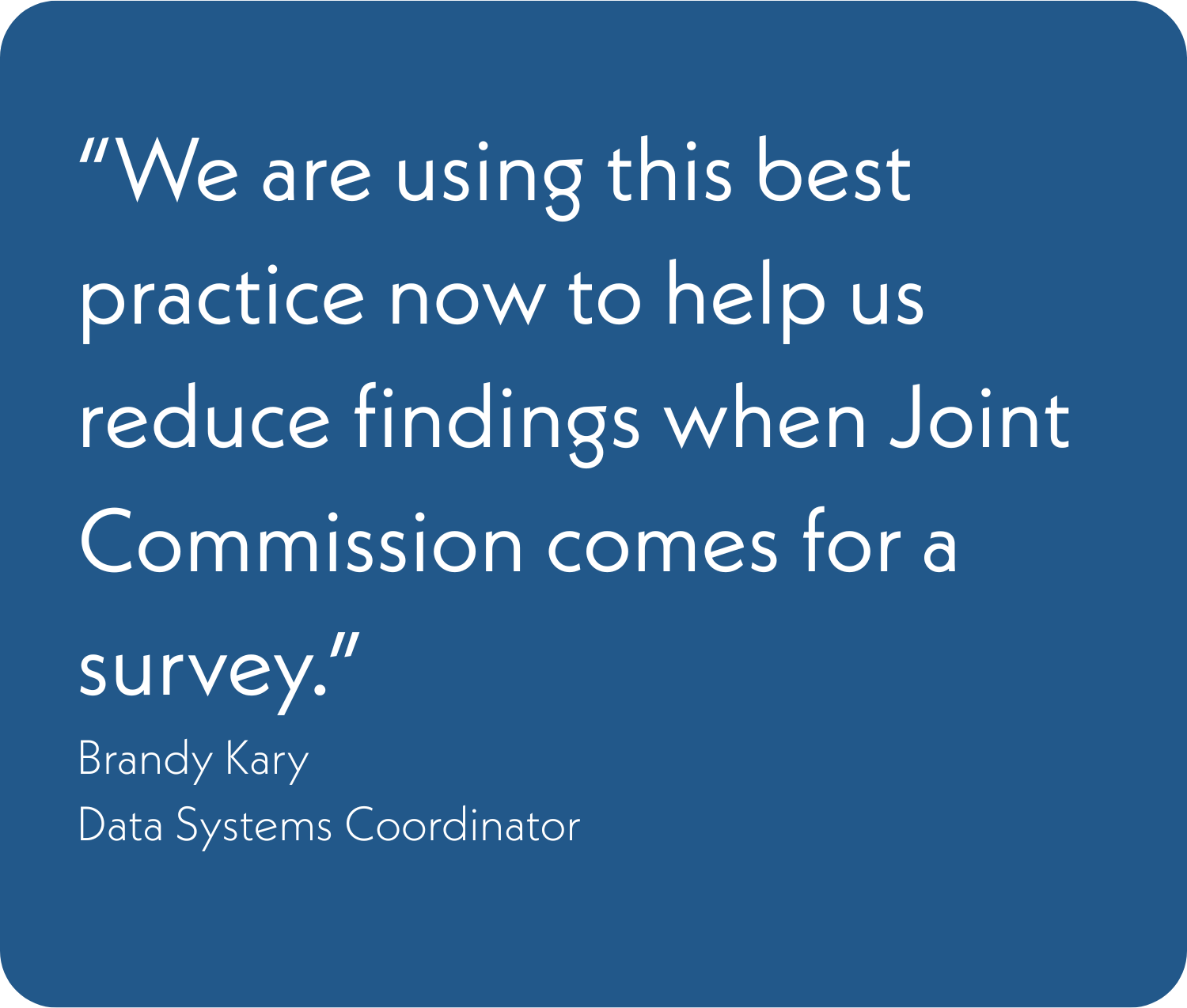 The software has allowed for more accountability across departments, shedding light on trends in the facility which allows executive directors to make even more strategic decisions. Lochner said, “I’m getting feedback from department leaders that they’re pleased and enthusiastic about the process now! They get that email. They just click ‘Resolve’, type in their note or how they resolved it, hit submit, and they’re done!” Kary added, “We are using this best practice now to help us reduce findings when Joint Commission comes for a survey.”